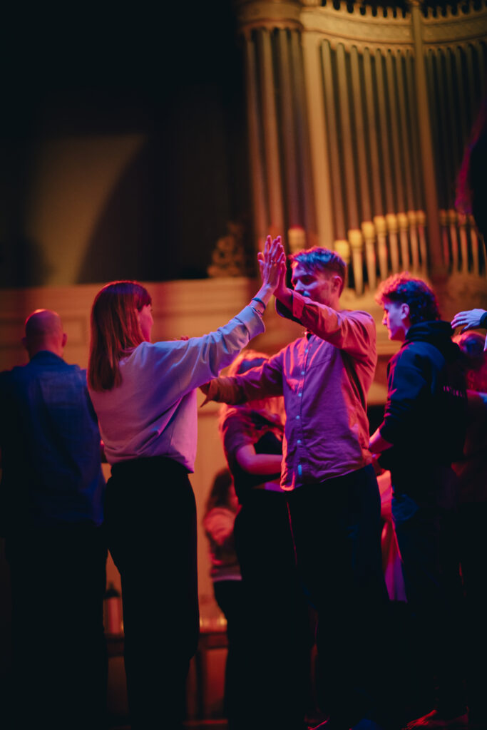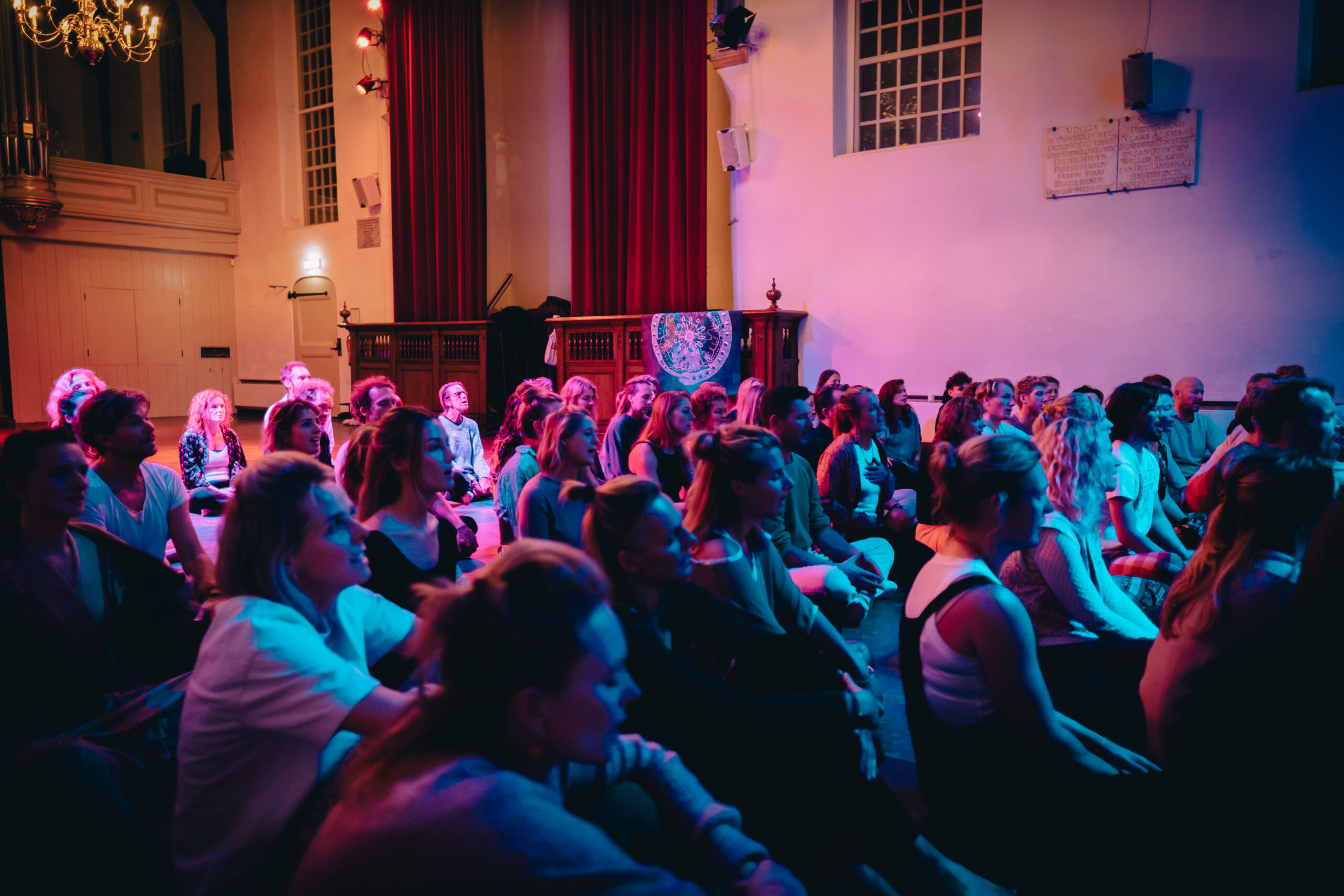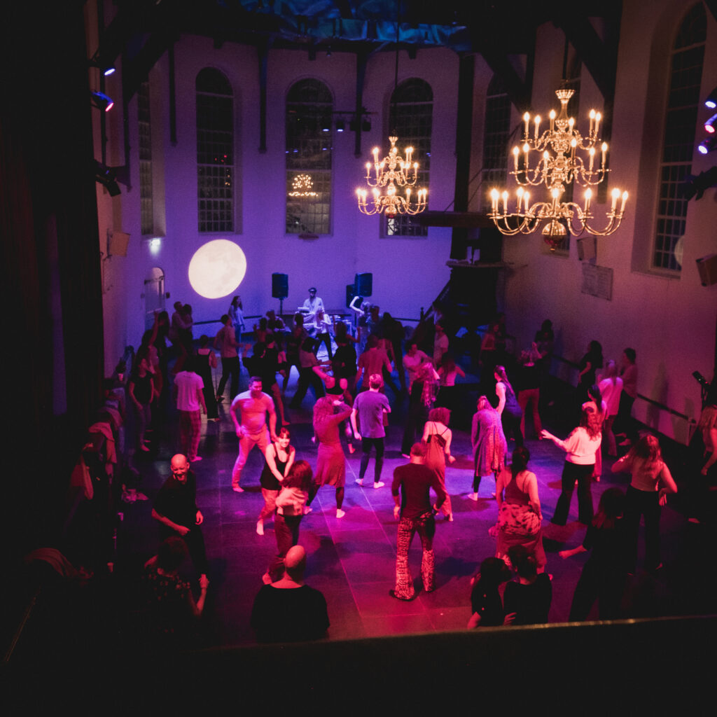 De kerk dateert uit 1609. In deze fantastische kerk dansen we onder de kroonluchters op de, nu verwarmde, tegels. We dansen op de eeuwenoude graven. We voelen en vieren wat er is geweest in dit moment. De akoestiek en de energie van ‘zijn’ en ‘verbinden’ brengen de klanken en de ervaring diep naar binnen. Het laat de liefde stromen…… het is een plek die (je) raakt!